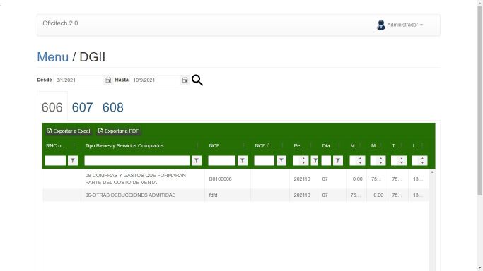 Tu mismo podrás generar tus reportes mensuales (606,607,608) de envio de datos a La DGII, pues el sistema exporta a excel los datos y solo lo pegas en las plantillas que descargues de la DGII.