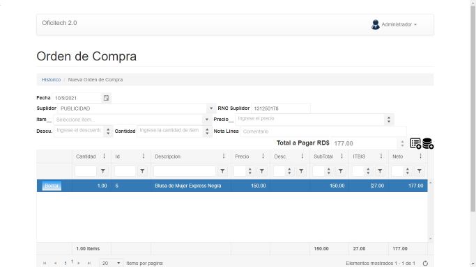 Puedes emitir órdenes de compras luego recibir la cantidad despachada por tu suplidor y controlar las pendientes. Al recibirla incrementarás tu inventario y genrarás CXP.
